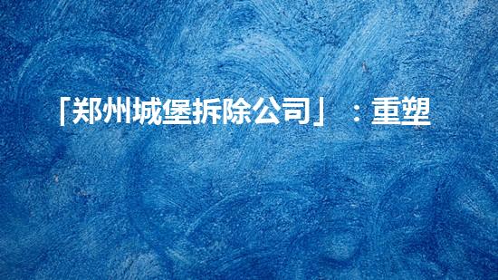 「郑州城堡拆除公司」:重塑城市面貌,为民众安全护航!