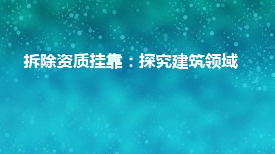 拆除资质挂靠:探究建筑领域中的商业机会