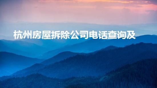 摘要:杭州房屋拆除公司是一家提供房屋拆除服务的专业公司。本篇文章将从电话查询和静力拆除这两个方面入手,给大家详细介绍杭州房屋拆除公司提供的服务。文章旨在为拆除行业提供专业深入的分析,引导人们更加关注拆...
