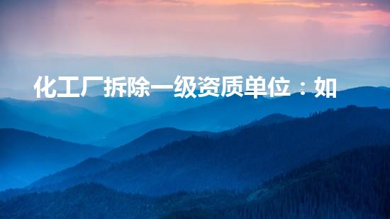 化工厂拆除一级资质单位:如何顺利实现?