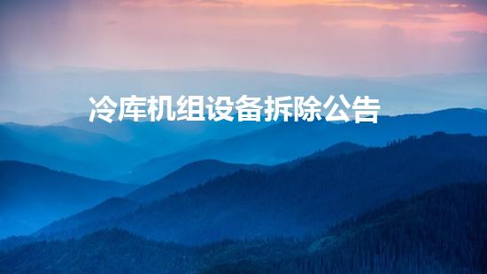 摘要:近期,一则关于冷库机组设备拆除公告引起了广泛关注。该公告涉及到的是一家巨型冷库的设备拆除工作,由于拆除涉及到的范围及拆除过程中的安全性问题,该公司决定委托专业拆除公司进行拆除工作。为此,我们需要...