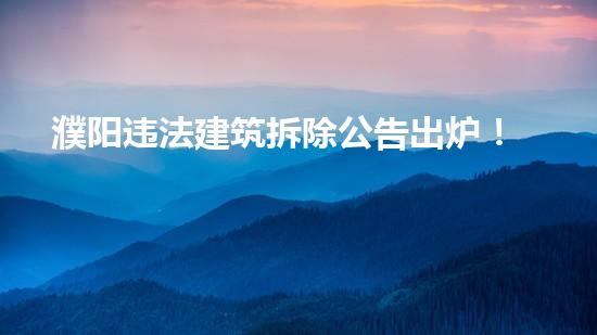 摘要近日,濮阳违法建筑拆除公告出炉。这引起了公众的广泛关注。作为一个化工技术专家,我将从多个角度来深入分析并阐述这一公告的相关问题,提供专业的见解和建议。正文一、违法建筑的定义及其危害违法建筑是指建设...