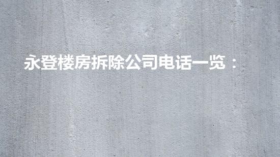永登楼房拆除公司电话一览:即刻解决拆迁难题
