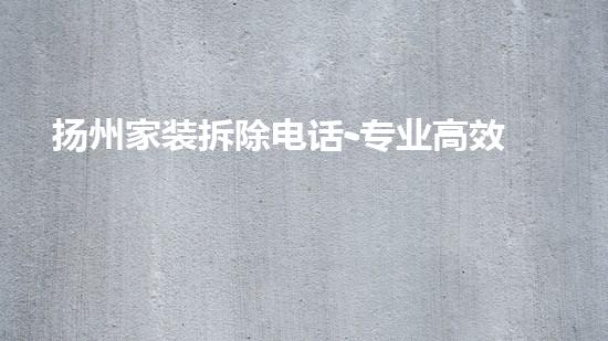 摘要:扬州家装拆除电话-专业高效服务是一家专业的拆除公司,提供高效、安全、环保的家装拆除服务。本文将详细介绍扬州家装拆除电话-专业高效服务的4个方面,分别是拆除前的安全诊断、拆除流程的设计、设备回收和...