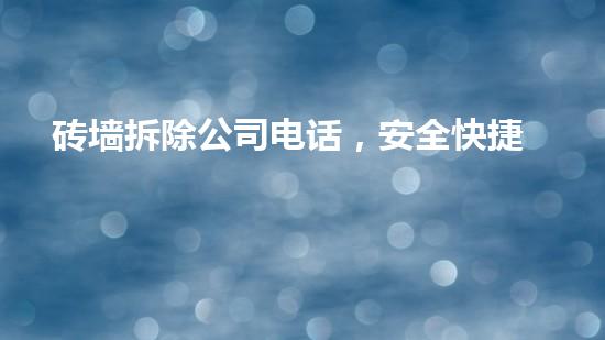 摘要砖墙拆除公司电话提供安全快捷的服务,为拆除行业提供了方便和便利。本文章深入探讨该公司电话服务的各种特点,包括服务内容、项目案例、拆除技术、团队能力等方面,为读者呈现一个全面的面貌。正文服务内容砖墙...