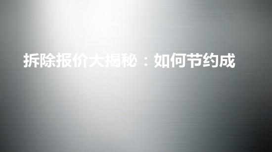 摘要:拆除报价大揭秘:如何节约成本?拆除是一个非常细致、复杂的工程,同时也是一个非常费用昂贵的任务。拆除项目需要大量的时间、资源和经济投入,因此控制成本非常重要。本文将从化工行业专家的角度,讨论如何在...