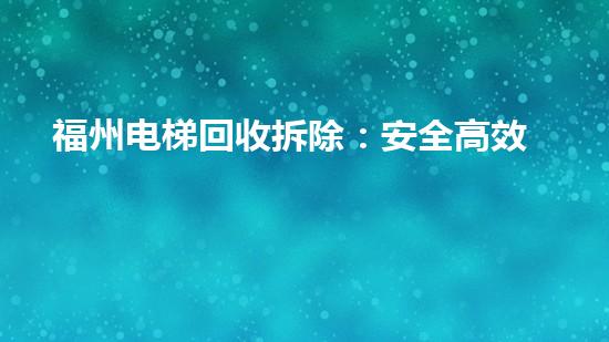 福州电梯回收拆除:安全高效,绿色环保的解决方案