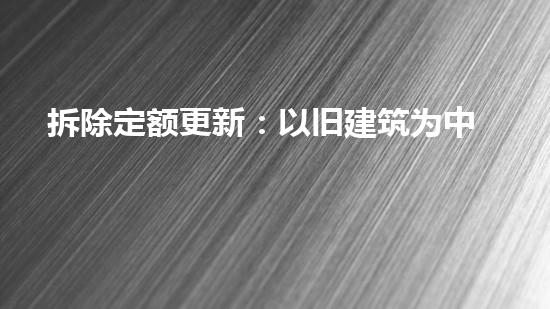 拆除定额更新:以旧建筑为中心的新标准摘要:随着城市化的加速,旧建筑的拆除工作变得十分重要。如何科学、规范、高效地进行旧建筑拆除,已经成为建筑工程领域的一个重要课题。本文将以拆除定额更新:以旧建筑为中心...