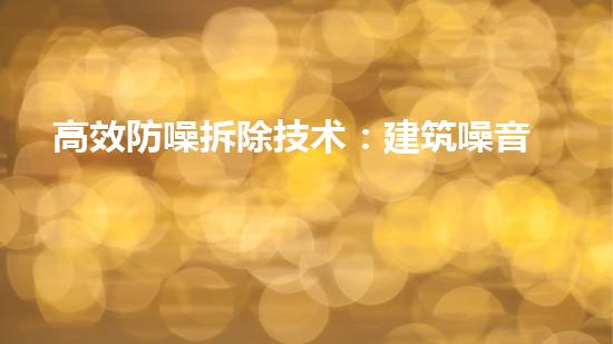 摘要:随着城市建设的不断扩张,建筑拆除的需求不断增加。然而,建筑拆除所产生的噪音污染问题却十分严重。为此,开发出高效防噪拆除技术就显得尤为重要。本文主要介绍建筑噪音瞬间消音的高效防噪拆除技术,并详细解...