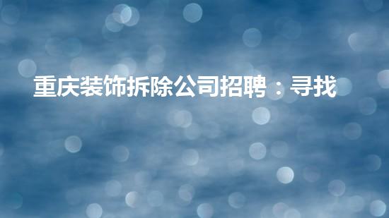 重庆装饰拆除公司招聘:寻找化工技术专家