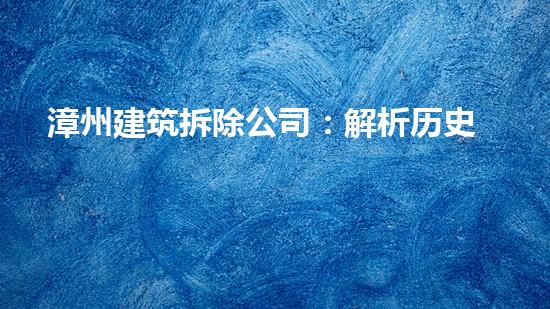漳州建筑拆除公司:解析历史与未来的拆迁现状