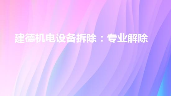 摘要:建德机电设备拆除是一个专业的技术服务系统,旨在解除客户的后顾之忧。文章将重点关注建德机电设备拆除的方方面面,包括工程规划、技术实施、设备回收以及危废处理等方面,同时也将介绍不同的拆除技术和应用。...
