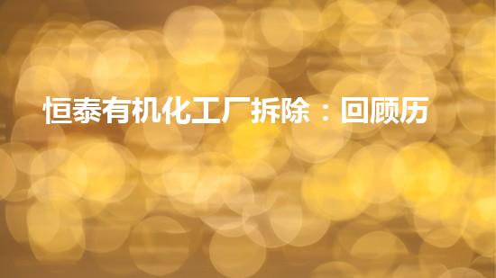 恒泰有机化工厂拆除:回顾历史,反思未来