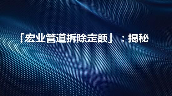「宏业管道拆除定额」:揭秘宏业拆除管道的一切