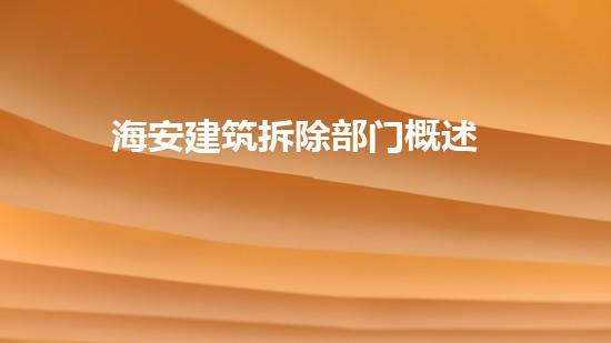 摘要:本文将详细介绍海安建筑拆除部门的相关情况。为了引起读者的兴趣,我们将提供一些背景信息,如巴洛仕集团化工厂的拆除,以及水刀切割技术的应用等。在正文中,我们将从专业角度出发,讨论该部门的几个方面,如...