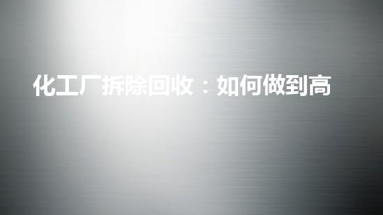 随着化工行业的不断发展,化工厂在建设一段时间后也将面临拆除与回收的问题。如何在化工厂拆除回收中做到高效、安全和环保?本文将从技术、人力、设备、危废处理、土壤修复和成本等方面进行分析,同时推荐巴洛仕集团的化工拆除回收解决方案。