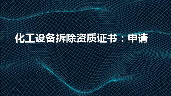 申请化工设备拆除资质证书的企业需要符合一定的条件。首先,企业必须依法取得营业执照和安全生产许可证,同时资金和技术条件也需要满足相关要求。其次,企业必须具备一定的环保意识和责任心,严格控制化工设备拆除、处置过程中的污染及安全风险。此外,企业还需有专业的拆除队伍和设备,进行设备的拆解、清洗和回收,确保设备处置的安全与合理性。