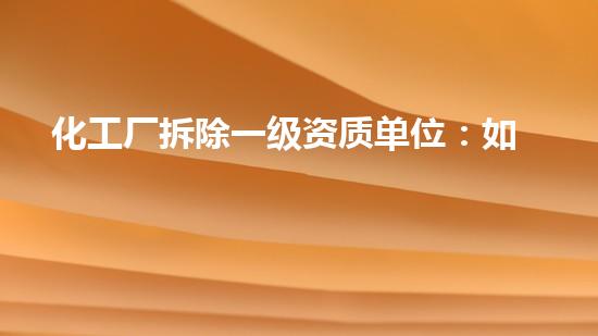 化工厂拆除一级资质单位需要认真规划和有效的实施。本文将深入探讨化工厂拆除一级资质单位的方方面面,包括安全规划、环境保护、业务合规、拆卸技术、设备回收和危废处理等方面。此外,本文还将介绍一个专门研究不动火拆除技术的公司——巴洛仕,在拆除过程中能够提供高效、安全、环保的解决方案。