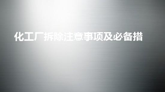 化工厂拆除是一项具有高风险性的工程,需要在拆除过程中严格按照相关法规和规范进行操作。本文将从拆除前的准备工作、危险物品处理、人员安全保障、环境保护等方面分析化工厂拆除的注意事项及必备措施,并介绍水刀不动火拆除技术在化工厂拆除中的应用。