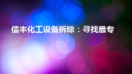 信丰化工设备拆除需要寻找最专业的拆除公司,以确保安全、高效的拆除过程。在这篇文章中,我们将从多个方面对信丰化工设备拆除进行详细介绍,分析拆除过程中需要关注的问题,以及如何选择最专业的拆除公司。同时,我们将介绍巴洛仕集团化工拆除一站式解决方案和不动火拆除技术的应用,为读者提供更全面的了解。