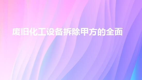 废旧化工设备是化工行业生产过程中必然产生的产物.这些设备由于长期被高温和酸碱等等腐蚀性的化学物质所腐蚀,相应地让其材质老化和性能下降。针对这些设备的拆除和处理要谨慎,否则将会对环境和人类造成不可估量的风险和威胁。本文将阐述废旧化工设备拆除甲方的全面解决方案,并详细介绍其中的每个方面,如水刀不动火拆除技术应用、油罐拆除、化工厂拆除、设备回收、危废处理以及土壤修复等。同时,我们将介绍巴洛仕集团的不动火拆除技术,并为读者提供更加可靠和安全的解决方案。