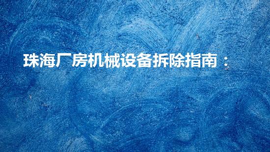 本文旨在为读者介绍珠海厂房机械设备拆除的流程、技巧以及注意事项。首先引出文章主题,接着提供相关的背景信息,让读者了解本文的意义和价值。本文主要分为四个方面来详细介绍,包括前期准备、拆除流程、技巧以及注意事项。最后,总结文章的观点和结论,并提出未来的研究方向。