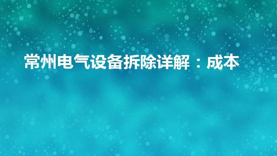 在一些情况下,常州电气设备需要拆除,如设备老化、技术更新、场地调整等原因。本文将详细介绍常州电气设备拆除的成本、流程和注意事项,希望对读者提供有用的信息和背景。