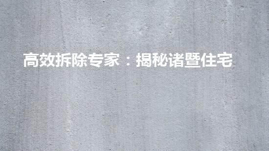 本篇文章将介绍高效拆除专家:揭秘诸暨住宅拆除公司的独门技艺。通过对该公司拆除工程的分析,深入挖掘其独特的技术和方法。文章旨在向读者展示拆除行业之中的专业技术,同时提供先进的拆除技术对我们生产生活中带来的好处。