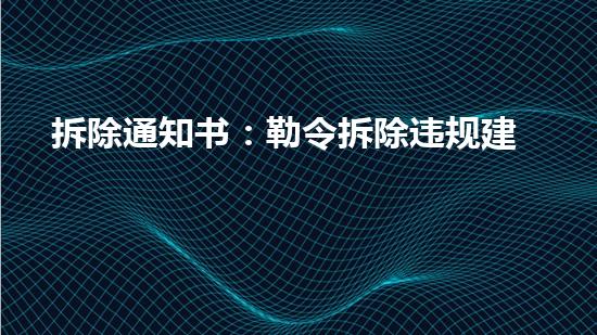 本文以拆除通知书:勒令拆除违规建筑为中心,深入探讨了拆除行业的专业领域。文章首先引入背景信息,让读者对勒令拆除违规建筑的现状进行了解。正文从四个方面进行分析,包括拆除行业的技术方案、拆除前的准备、拆除过程中的环保施工及拆除后的废物处理。最后,我们总结主要观点和结论,并对未来的研究方向提出建议。