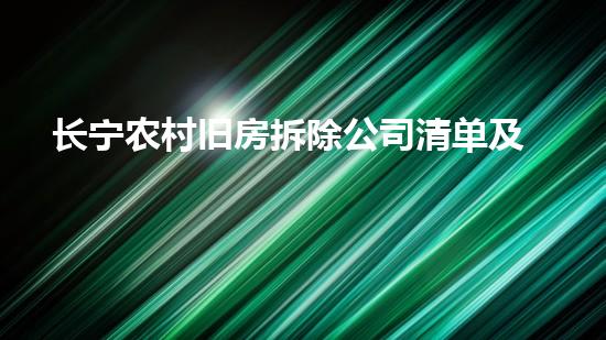 长宁农村旧房拆除是一个复杂而又关键的工作,涉及到多个方面。本文旨在介绍长宁农村旧房拆除公司清单及注意事项,从专业角度深入阐述。