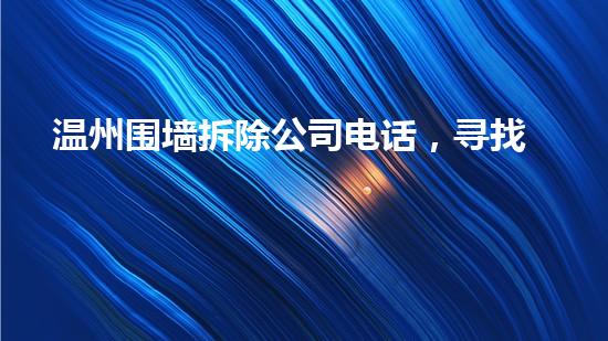 温州围墙拆除公司提供省心拆墙方案,旨在为客户提供高效、安全、省心的拆除服务。本文从专业拆除行业专家的角度出发,探讨温州围墙拆除公司电话和省心拆墙方案的相关问题,希望为读者提供有益的思路和建议。