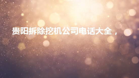 贵阳作为贵州省的省会,其城市建设和拆除工作发展迅速,用于拆除工作的挖机需求量也逐步增加。本文将介绍贵阳拆除挖机公司电话大全,挖掘机租赁、挖掘机出租、挖掘机拆除电话及价格查询,为读者提供全面的服务信息。
