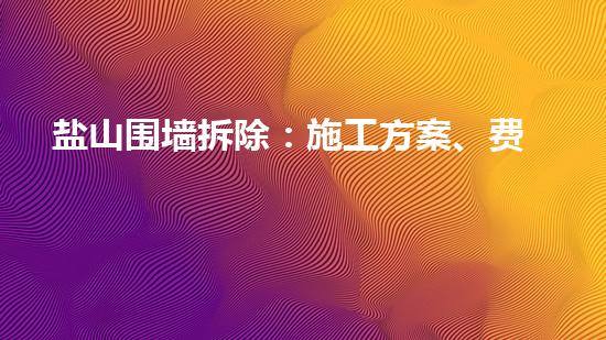 盐山围墙的拆除是一项非常重要的工程,本文将从化工专家的角度出发,探讨盐山围墙拆除的施工方案、费用分析与纠纷解决问题。文章通过详细解释主题,陈述观点,提供支持和证据,并引用其他人的研究和观点,为读者提供丰富的信息和深入的分析。建议读者注意文章结构的清晰和语言的准确性,以便轻松理解文章的意图。