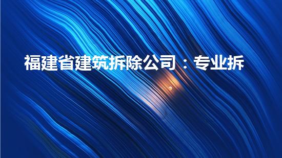 福建省建筑拆除公司专业拆除,安全有保障。本文将从四个方面对该公司进行详细的专业深入阐述,包括公司的背景信息、专业技术、环保施工和应用水刀切割拆除技术等。文章内容旨在为读者揭示福建省建筑拆除公司的优势,并为读者提供更深入的了解。