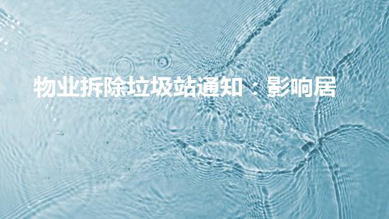 本文阐述了一则物业拆除垃圾站通知,它对居民生活产生了影响,同时引发了环保议题。本文旨在探讨这一消息背后的原因,指出这一措施的必要性,并探讨其实施的可行性。