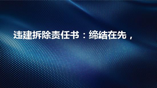 作为一项拆除行业的专业工作,违建拆除是一项不可绕过的工作。拆除一般需要提前制定责任书,对拆除工作进行规范化管理。本文将从四个方面对违建拆除责任书进行详细阐述,为拆除行业工作者提供科学指导。