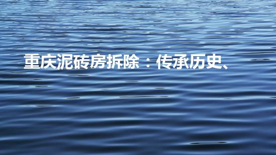 重庆泥砖房随着城市建设升级,正在进行拆除,为了实现传承历史、安全拆除、环保新生的目标,我们需要专业的拆除行业专家提供技术支持。本文将从四个方面对重庆泥砖房拆除进行深入探讨,希望为读者提供有价值的信息。