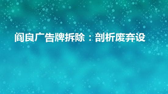 在阎良广告牌的拆除过程中,废弃设施引发了环境隐患。作为拆除行业的专家,我们需要关注拆除过程中可能引发的环境问题,提出解决方法。本文将从多个方面探讨阎良广告牌拆除的环境隐患,以及采取的措施以确保环境安全。