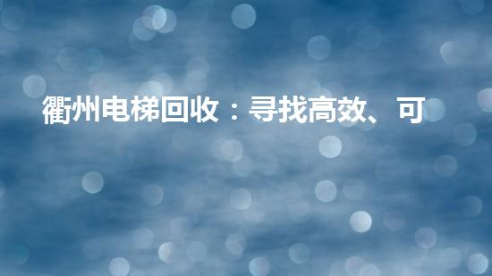 由于衢州市规模越来越大,市内电梯数量也相应增长,电梯老化和事故频发,已成为当地公众关注的热点问题,因此衢州电梯回收市场也越来越重要。本文着重探讨具有高效、可靠特点的电梯拆除公司,以期能够早日解决衢州市电梯问题。