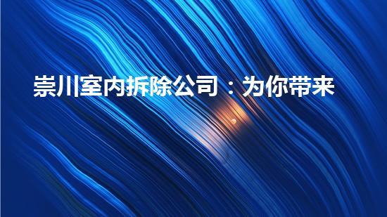 崇川室内拆除公司致力于为客户提供高效拆除与绿色环保的全方位服务。该公司采用先进的技术和设备,拥有专业的团队,为客户提供最优质的服务和解决方案。本文将深入探讨崇川室内拆除公司的优势,帮助读者更好地了解这家公司的工作理念、技术优势和服务特点。