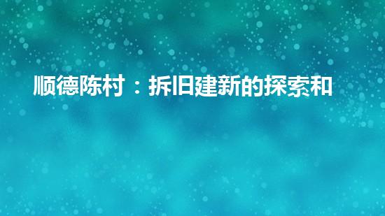 通过对顺德陈村拆旧建新的探索和挑战进行详细阐述,我们可以得到以下结论: