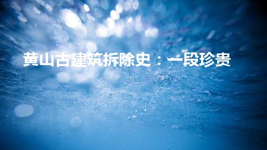 黄山古建筑拆除史是一段充满争议和思考的历史。这些文化遗产经历了不同的历史时期和政治环境,每一次拆迁都引发了社会的广泛关注和争议。但是,在这样的历史背景下,我们需要更多的思考和探索,为保护这些珍贵的文化遗产做出努力。