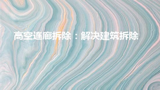 自古以来,人们一直在进行建筑拆除的工作。但是,由于现代建筑物的高度和复杂性越来越高,建筑拆除已经成为一项非常复杂的工作。高空连廊的拆除是一项非常复杂而危险的工作。为了解决这个问题,许多专业的拆除公司进行了许多尝试。在这里,我们将介绍一种高效的解决方案:高空连廊拆除。