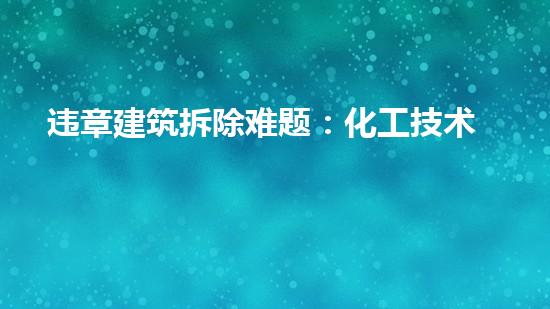 违章建筑拆除是当今社会面临的一个重要难题,它不仅影响城市的美观,还对环境和人民的生命安全产生威胁。化工技术专家是解决这一问题的重要力量,本文将探讨化工技术专家支招违章建筑拆除的难题。
