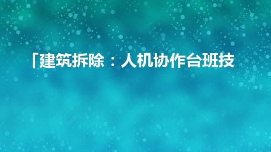 人机协作台班技术是一种将人和机器结合的高级技术。它涉及使用先进的机器设备和专业的人员,在建筑拆除中提高效率和保证安全。