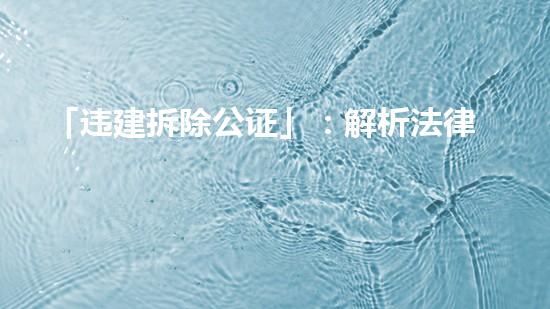 随着城市化和工业发展进程的加速,违法建筑的数量不断增加,给城市管理和社会治理带来了严重的挑战。违建拆除工作的效率和公正性成为社会公众关注的焦点。本文以「违建拆除公证」为中心,深入解析其法律内涵,旨在规范社会秩序,并引导拆除行业专家和社会公众共同参与违建治理。