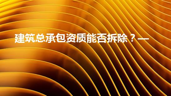 在建筑总承包行业中,常常需要拆除建筑物或设施。但是,很多人都不清楚建筑总承包资质能否被拆除,这个问题实际上牵扯到拆除权的问题。在本文中,我们将深入探讨建筑总承包资质能否被拆除以及拆除权的相关问题,帮助读者更好地了解这个话题。