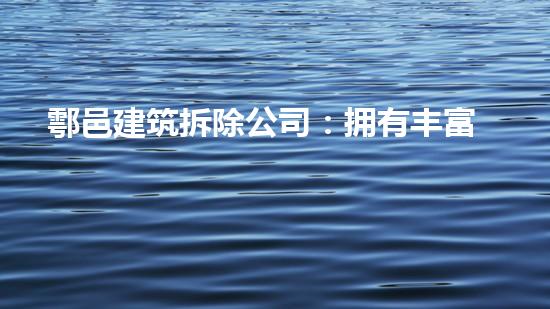 鄠邑建筑拆除公司:拥有丰富化工技术的专家们,是一家拥有实力丰厚的专业拆除团队。他们利用先进的技术和设备,为全国范围内的建筑拆除工程提供全方位、高质量的服务。这篇文章从多个方面深入阐述了鄠邑建筑拆除公司在化工技术方面的专业性和实力。文章的主要观点是:鄠邑建筑拆除公司拥有丰富的化工技术经验,他们致力于遵循环保和安全的原则,在建筑拆除工程中充分发挥他们的专长。