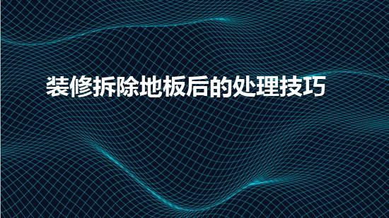 在装修拆除地板后的处理过程中,需要注意准备工作、地板拆除、废弃物处理和环保施工等方面。这些技巧和方法可以帮助人们有效地处理地板拆除所产生的废弃物和环境问题。同时,本文还涉及到一些专业技术和话题,如化工厂拆除、污泥减量化、废液处理、危废处理等。在处理废弃物时,要注意分类和回收利用。在环保施工时,要使用环保材料,并且减少噪音和粉尘的产生。这些技巧和方法有助于实现更加绿色、环保、可持续的人居环境。