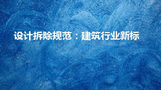设计拆除规范:建筑行业新标准,是我们在设计拆除过程中必须遵循的标准。在设计拆除的过程中,我们必须重视施工前的准备工作、施工安全和环保、拆除加工技术、危险品处理、污染物减量化以及废液处理等方面。只有严格遵守这些规定和标准,才能够实现高效、快速、质量优良的拆除效果,并保护环境和人员的安全和健康。未来,我们需要在现有规定和标准上不断创新和完善,更好地实现设计拆除工作的高效、环保和安全。